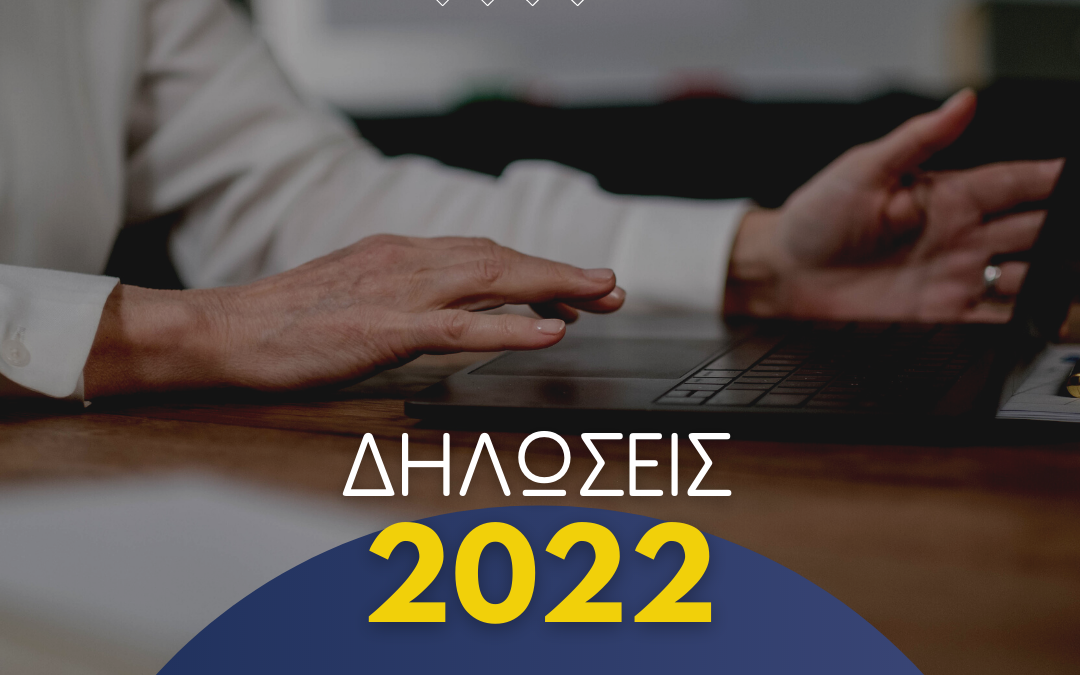 Οι φετινές δηλώσεις ξεκίνησαν ήδη από την αρχή του μήνα Απριλίου. Για τα εισοδήματα που αποκτήσατε εντός του 2021 (φορολογικό έτος 2021), η εφαρμογή για την υποβολή των δηλώσεων Ε1, Ε2, Ε3 είναι διαθέσιμη και εμείς πανέτοιμοι να σας εξυπηρετήσουμε και να σας εξασφαλίσουμε την σιγουριά και την ηρεμία που χρειάζεστε.